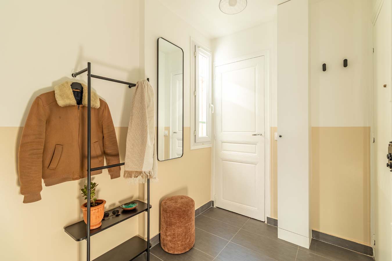 Dans cet appartement de charme aux moulures d’époque, l’enjeu n’était pas de transformer à tout prix, mais de révéler l’existant. Le plan, déjà très qualitatif, a été conservé, tandis que les circulations ont été subtilement optimisées pour améliorer le confort au quotidien.