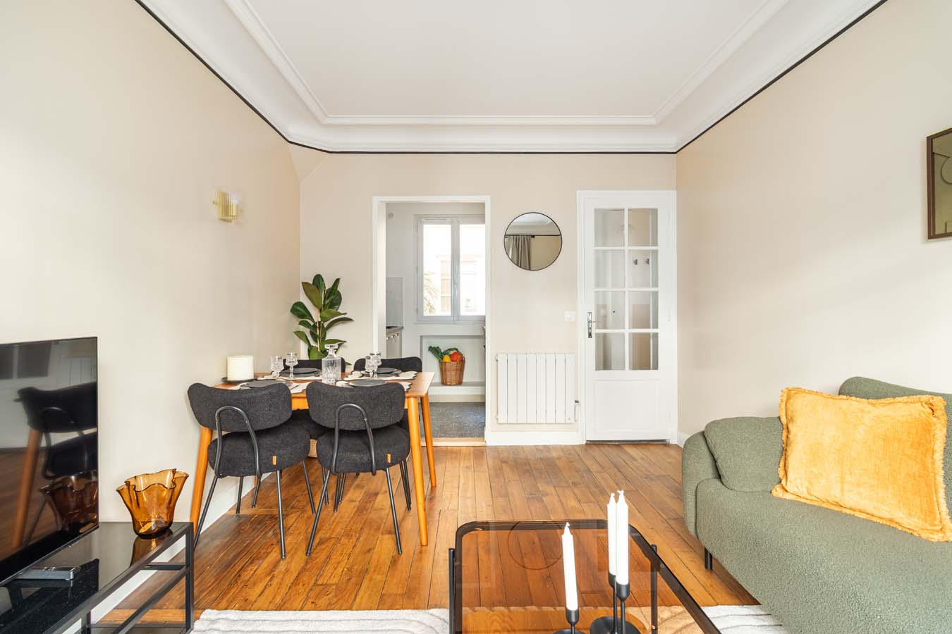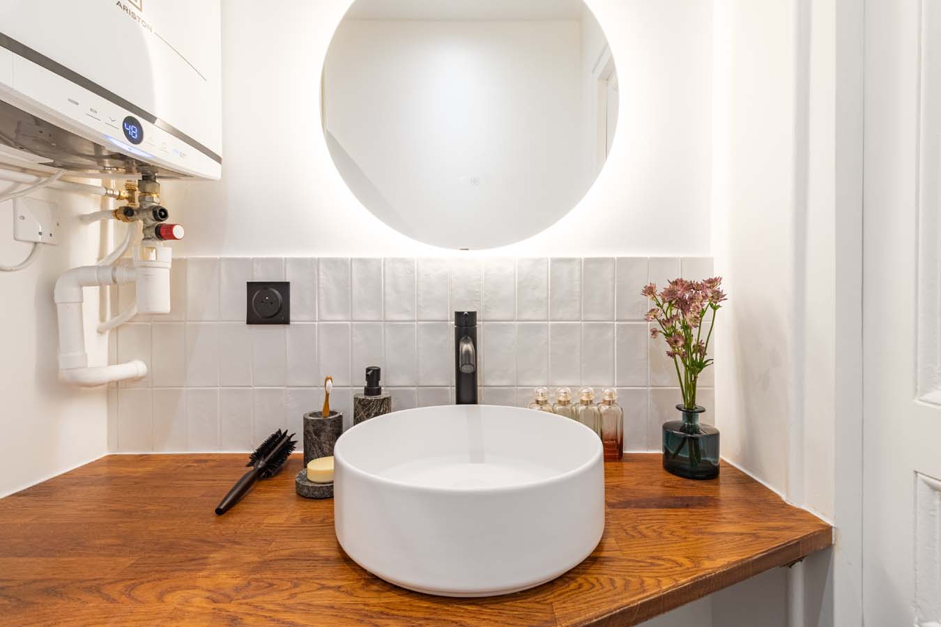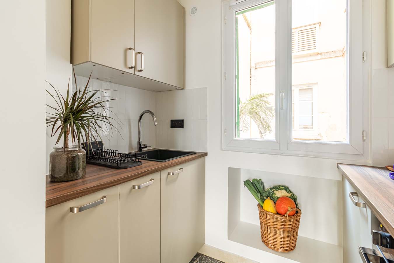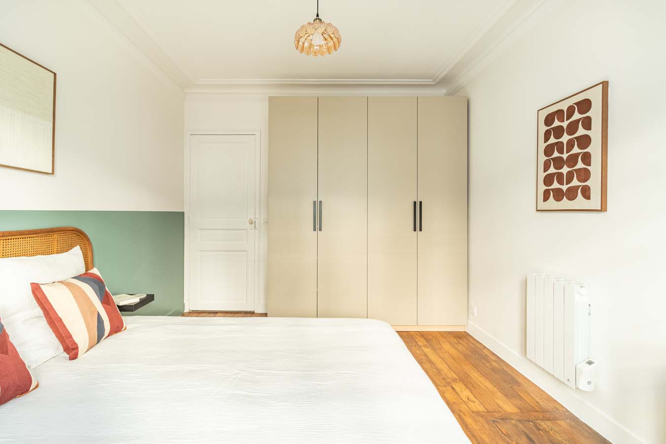 Situé dans un quartier hybride, à la fois populaire et extrêmement calme, l’appartement coche toutes les cases de l’investissement patrimonial rassurant. Résultat : un bien désirable, pérenne… et loué en seulement huit jours, après avoir même servi de décor pour notre spot publicitaire, preuve que chaque projet présenté est réel, habité et authentique.