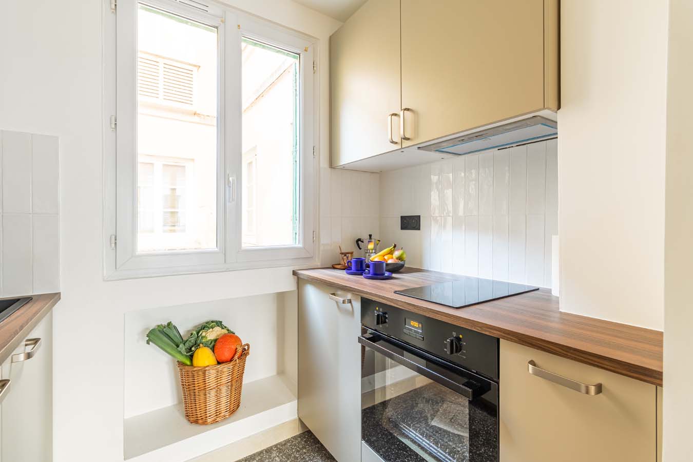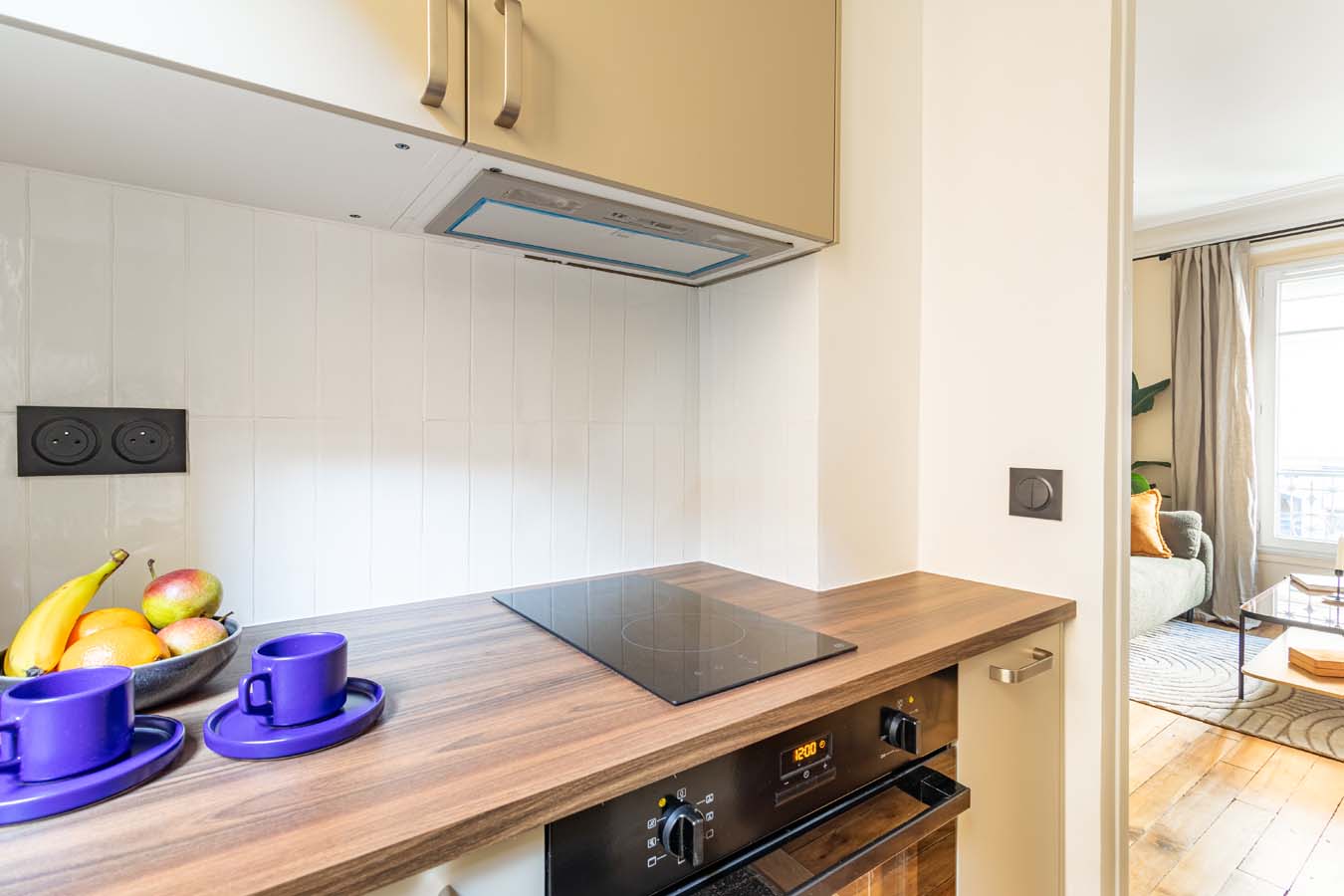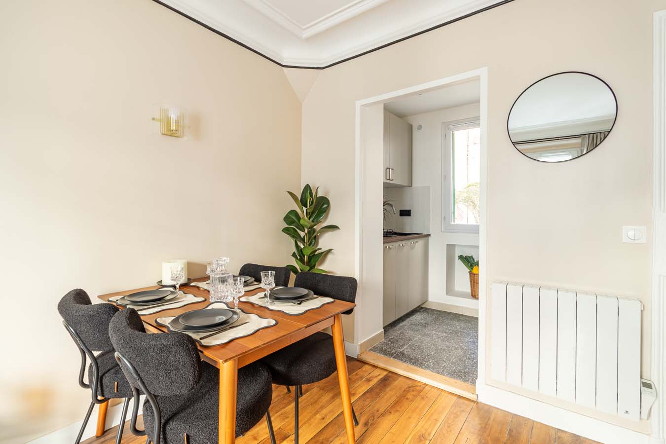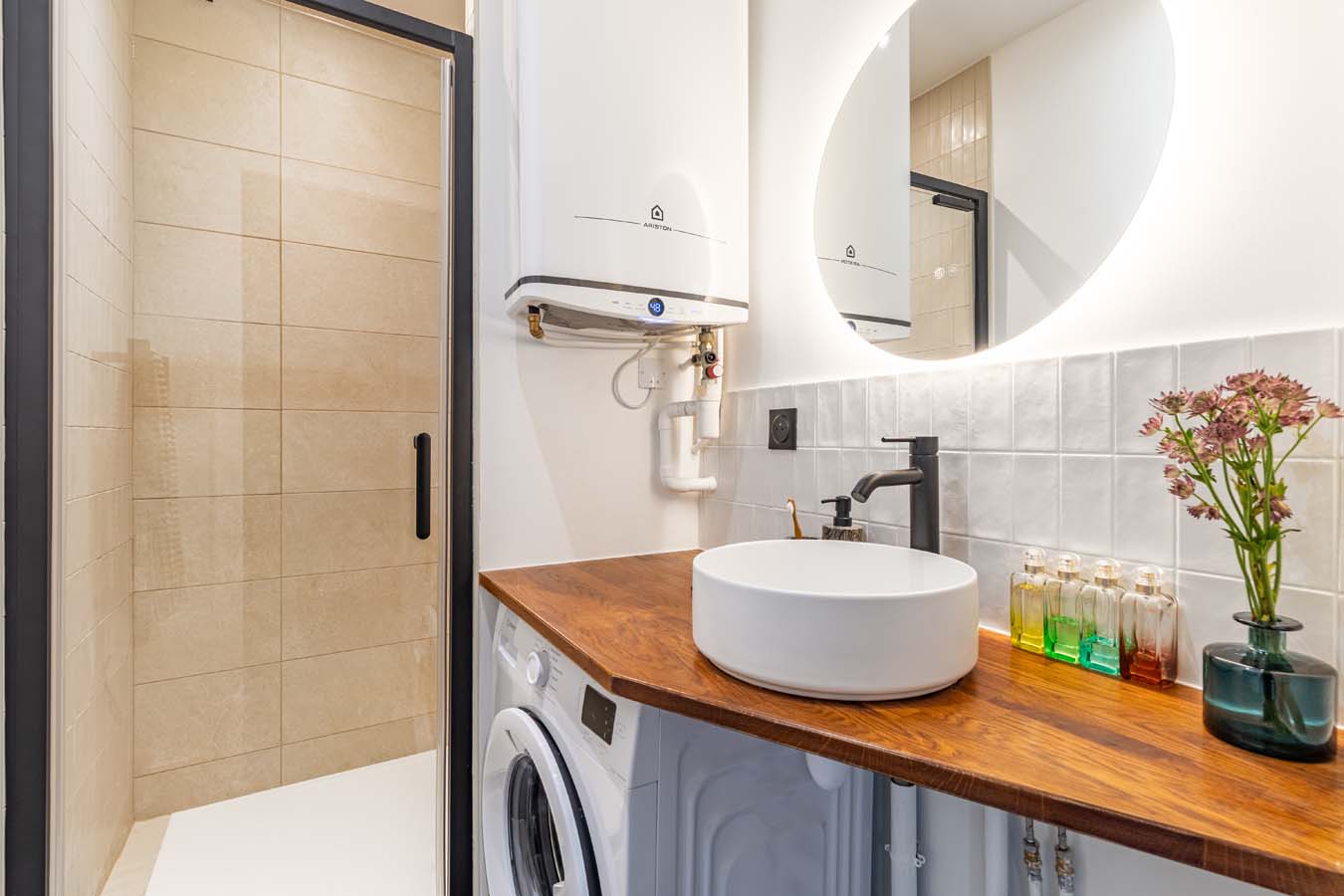 Situé dans un quartier hybride, à la fois populaire et extrêmement calme, l’appartement coche toutes les cases de l’investissement patrimonial rassurant. Résultat : un bien désirable, pérenne… et loué en seulement huit jours, après avoir même servi de décor pour notre spot publicitaire, preuve que chaque projet présenté est réel, habité et authentique.