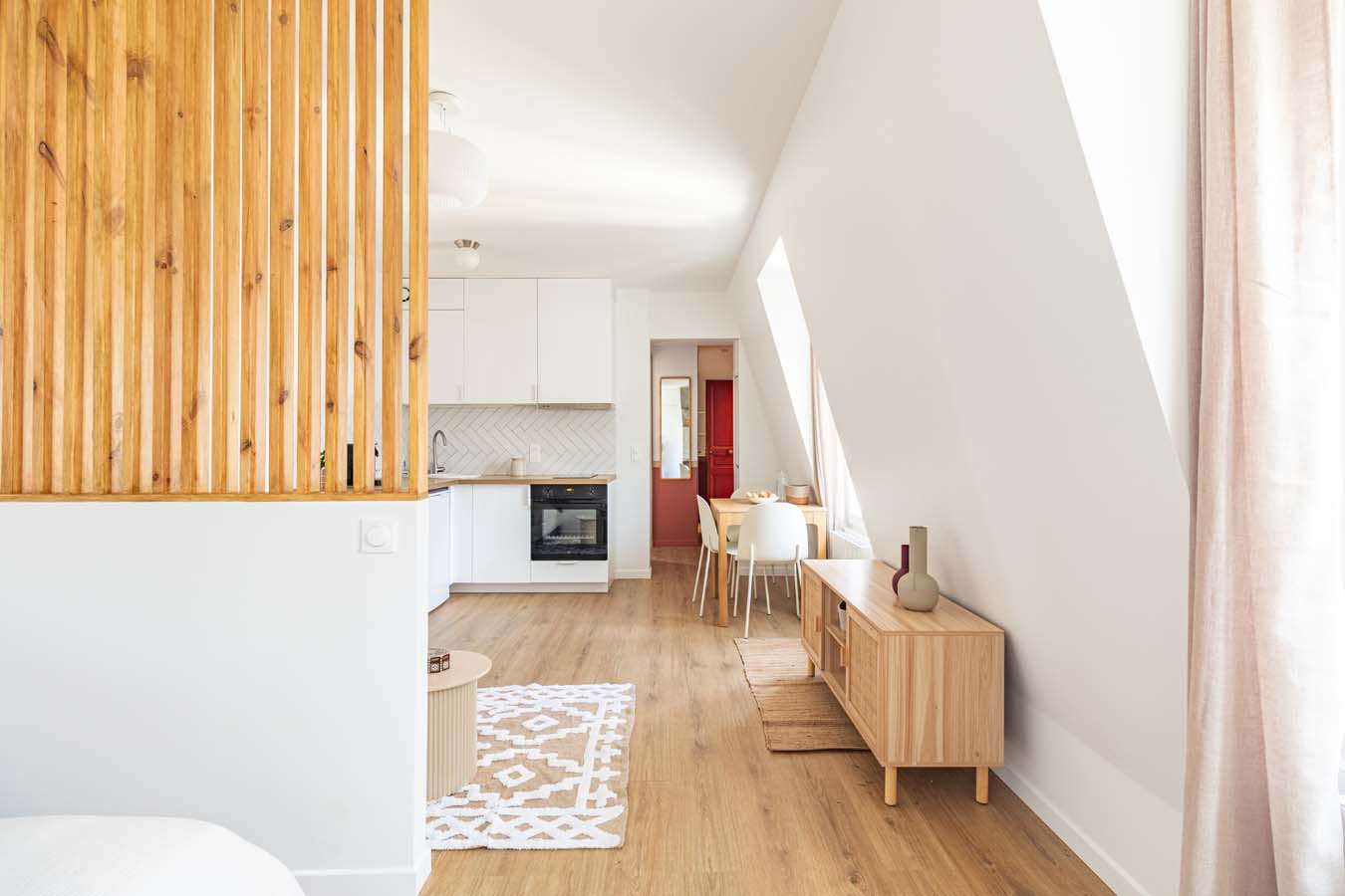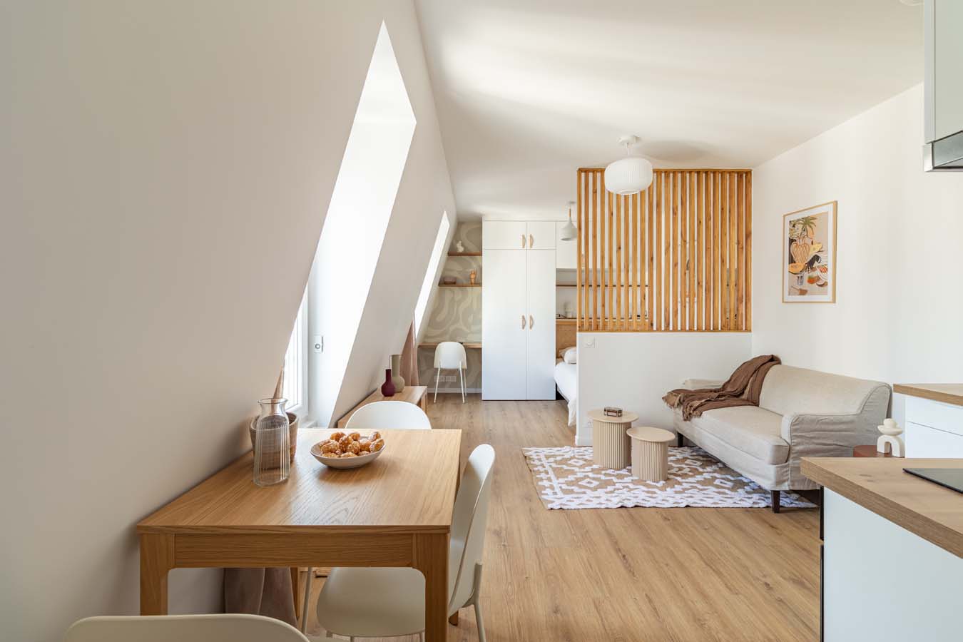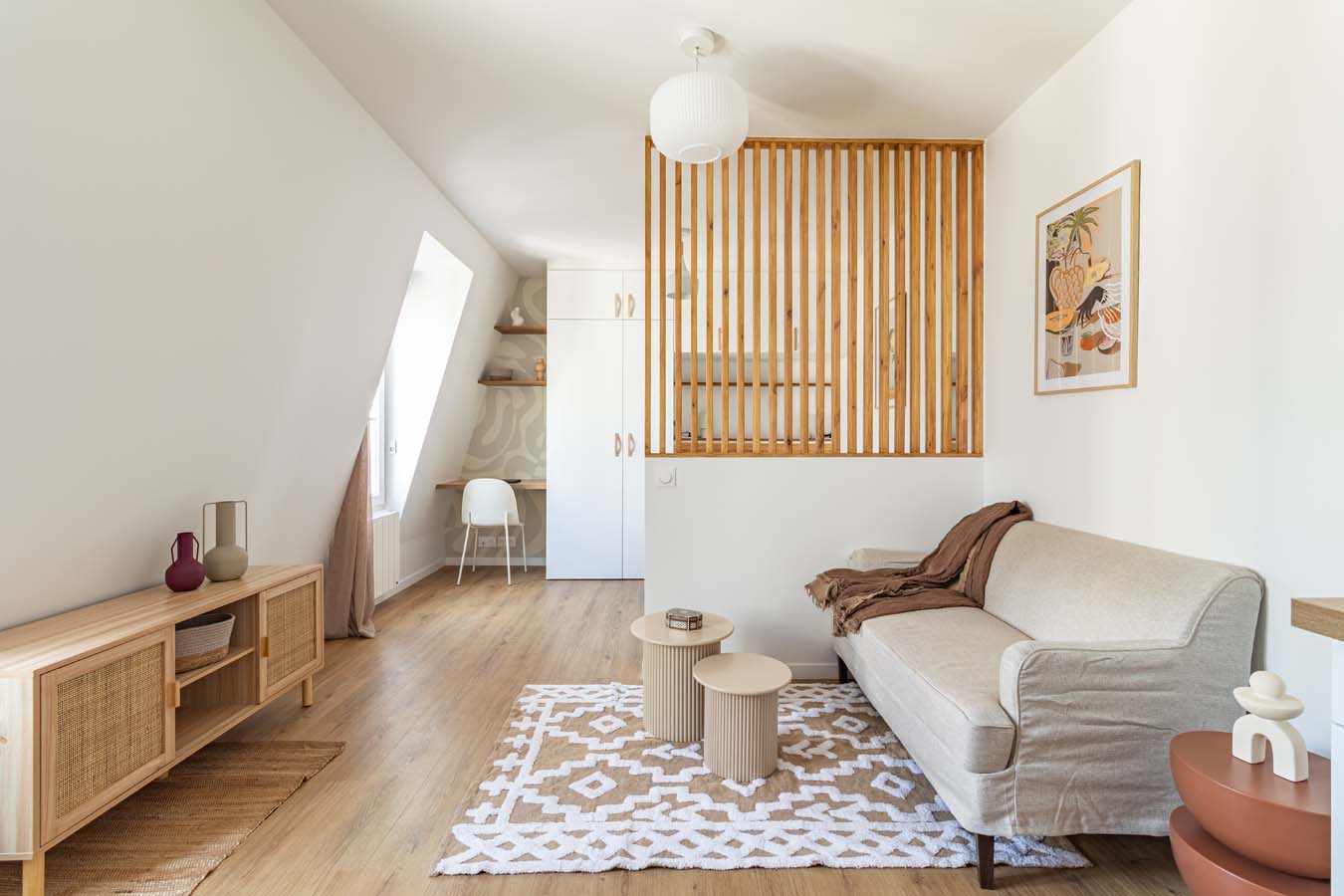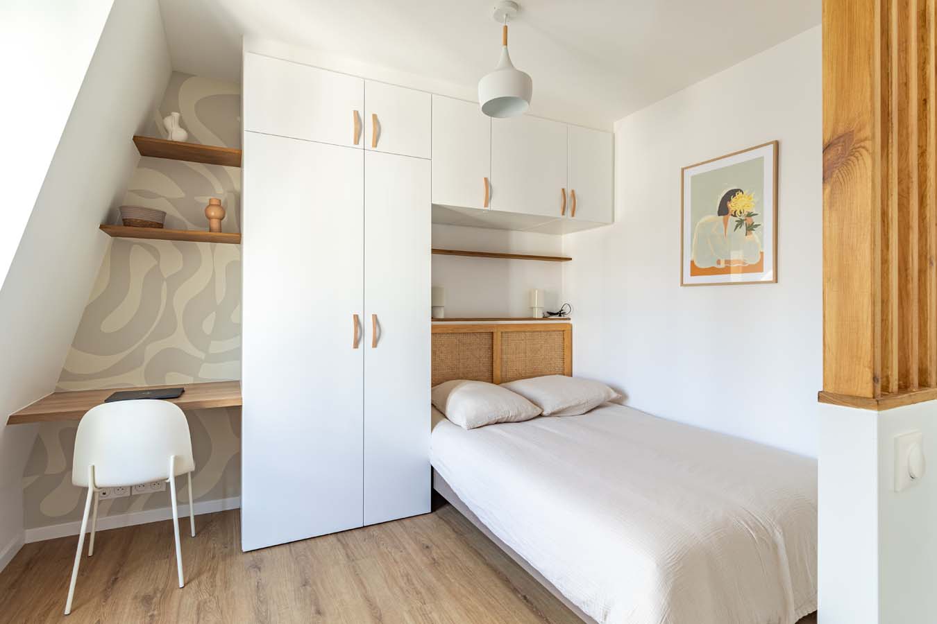 Au dernier étage d’un immeuble situé dans un passage calme, ce T1 bis de 28 m² a été entièrement repensé par un architecte d’intérieur : coin chambre séparé, mobilier sur- mesure, circulation fluide et plan maximisé. Emplacement premium : dans un quartier du 17ème en plein renouveau, avec la ligne 14 à deux pas pour rejoindre le centre de Paris, des points d’attractivité majeurs en un clin d’œil.